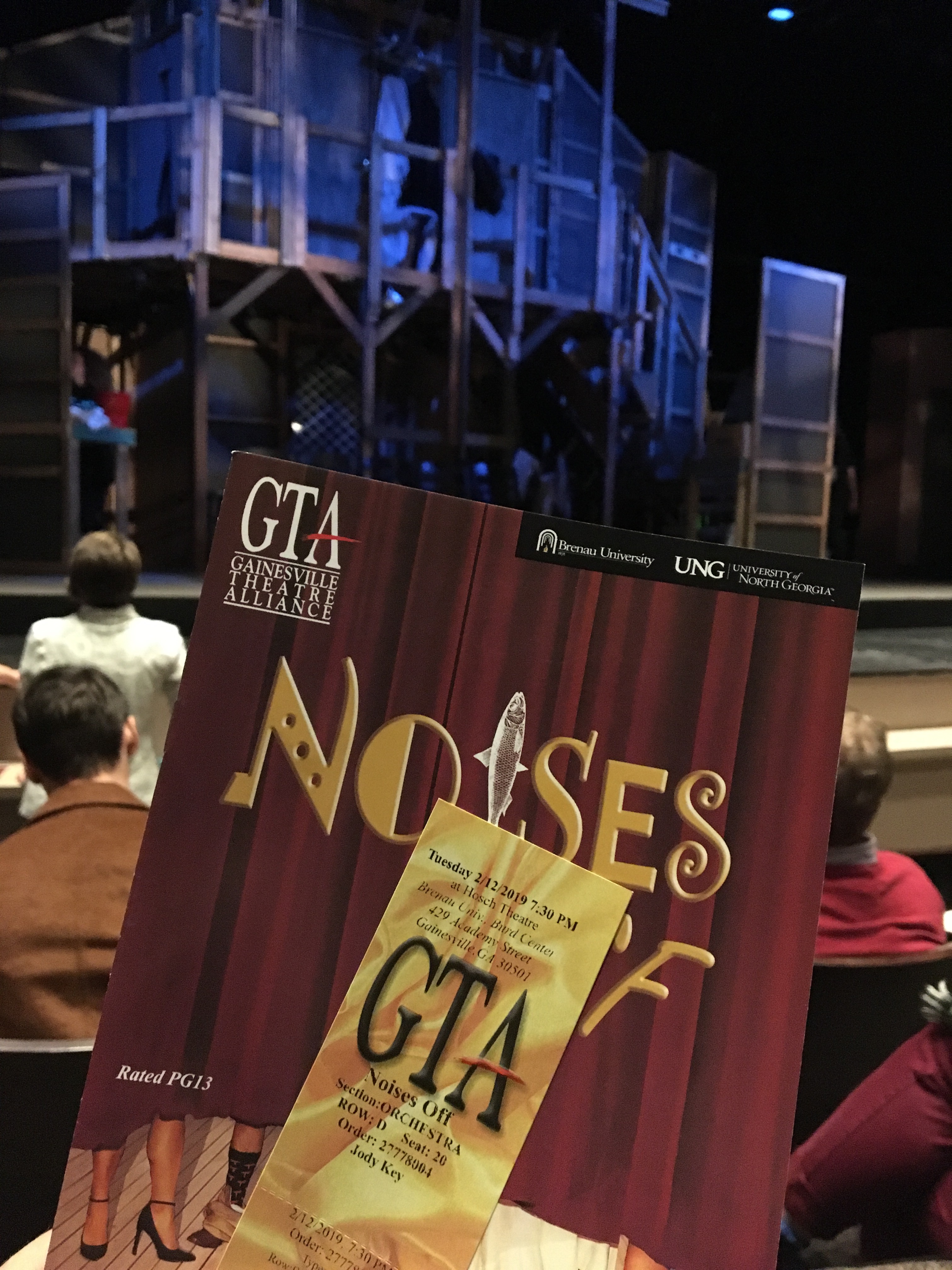 This show is all-around Key Noteworthy and a must-see performance. Noises Off runs from February 12-23 at the Hosch Theatre in the Brenau University Bird Center for the Arts. Tickets can be purchased at https://blog.ung.edu/gta/ or call the GTA box office at 678-717-3624