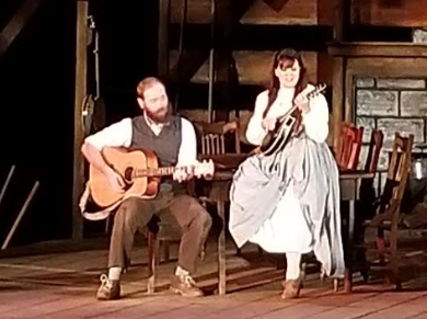 To start, Kudos to artistic director Brian Clowdus for his vision. Every performer was perfectly cast and worked together as an ensemble to tell a compelling story. In addition the sets, lighting, sound, and concept of the Civil war re-enactment and encampment complete with a cooking fire where tasty meals are served to patrons in tin cups are all stitched together into a theatrical quilt as meaningful as those used to signify safe-homes for the underground railroad.