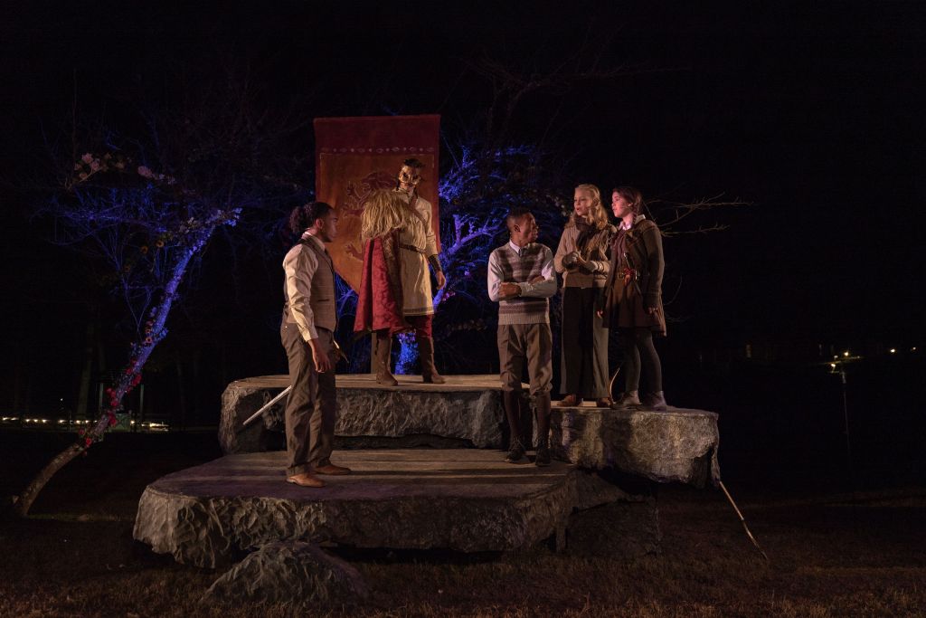 Then there’s the performers–I spoke to many of them after the show. This cast of 8 is phenomenal. Not a single equity actor graces this performance, and it’s fitting. In fact, every one of them is part of the Serenbe apprentice company with the exception of Rebekah Larsh (Susan), and Eleanor Rocha (Lucy). This is the story of children, and the young performers bring that story to life in a way that more seasoned actors couldn’t. Performers include Zuri Petteway as the formidable White Witch (her command of the stage is awe inspiring), Micah Paterson as the amiable Tumnus (as friendly off stage as he is on stage), Magan O’Dell as the graceful White Stag/Ryweth (what a beautiful singing voice!) and Bendetto Robinson as Psoferssor/Alsan (what a great choice to have him play both roles).