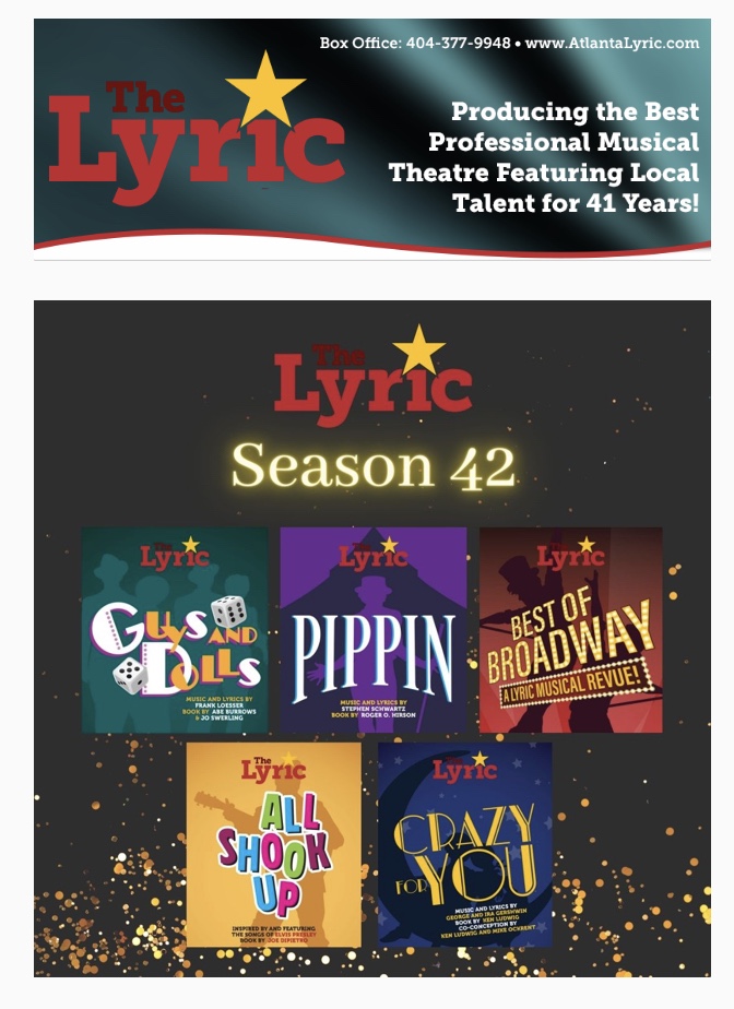 March 21, 2022 Speakeysie Entertainment Review and Promotion Atlanta Lyric Theatre Announces New Season Atlanta-March 21, 2022 Get your tickets at https://atlantalyrictheatre.com/box-office/season-subscriptions/ Share this: Click to share on X (Opens in new window) X Click to share on Facebook (Opens in new window) Facebook Like Loading...