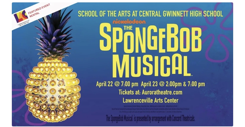 School of the Arts at Central Gwinnett presents its inaugural spring musical, The SpongeBob Musical! The stakes are higher than ever in this dynamic stage musical, as SpongeBob and all of Bikini Bottom face the total annihilation of their undersea world. Chaos erupts. Lives hang in the balance. And just when all hope seems lost, a most unexpected hero rises up and takes center stage. The power of optimism really can save the world!