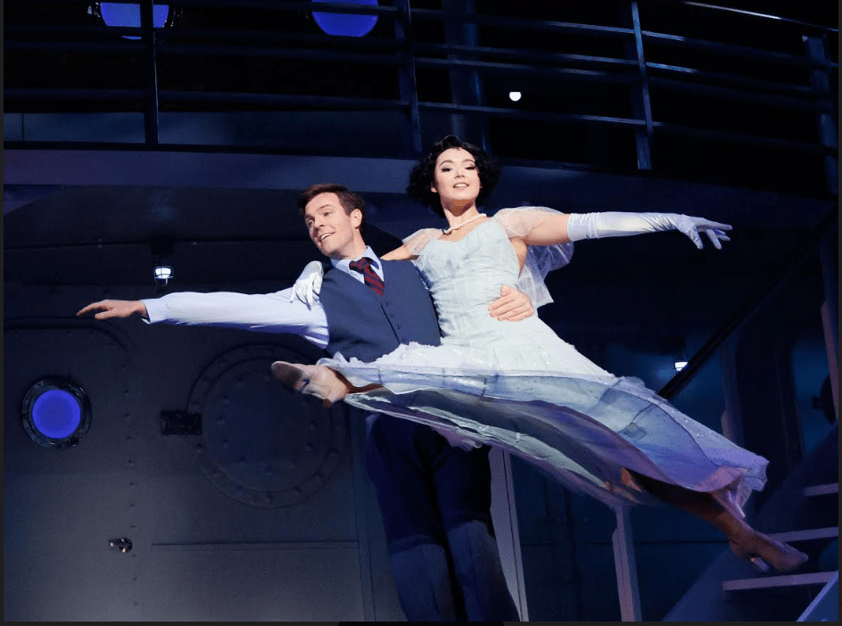 Anything Goes is set on an ocean liner traveling from New York to London. The hero of the story, Billy Crocker (Billy Tighe), has his heart set on debutante Hope Harcourt (Meadow Nguy). He stows away on the ship Hope is embarking on with her fiance, Lord Evelyn Oakleigh (Jamie LaVerdiere). Billy attempts to win Hope’s heart with the help of nightclub singer turned evangelist Reno Sweeny (Mamie Parris) and “Public Enemy Number 13” Moonface Martin (Googie Uterhardt).