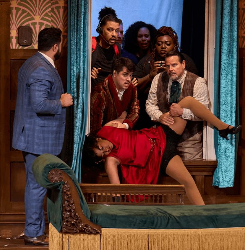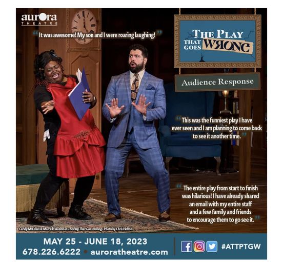 Ok, so Thursday was the day I rewatched THE PLAY THAT GOES WRONG at the Lawrenceville Arts Center’s Metro Waterproofing Main Stage presented by Aurora Theatre. Whew! That’s a mouthful! Remember, I was only able to review Act I as the play literally went wrong (click to read that review here). So anyway—-if you can get a seat in the front row, do it!! If you’ve already seen it, see it again!! If you haven’t seen it, FOMO (fear of missing out) is real, my friends! I know I used a lot of exclamation points just then. I’m not yelling at you, just super excited about this show, and time is running out. This play closes on Sunday, June 18th. Take your Dad–he’ll thank you!!