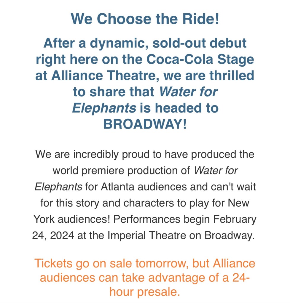 We are so excited for our friends at the Alliance Theatre and wanted to share the news!!