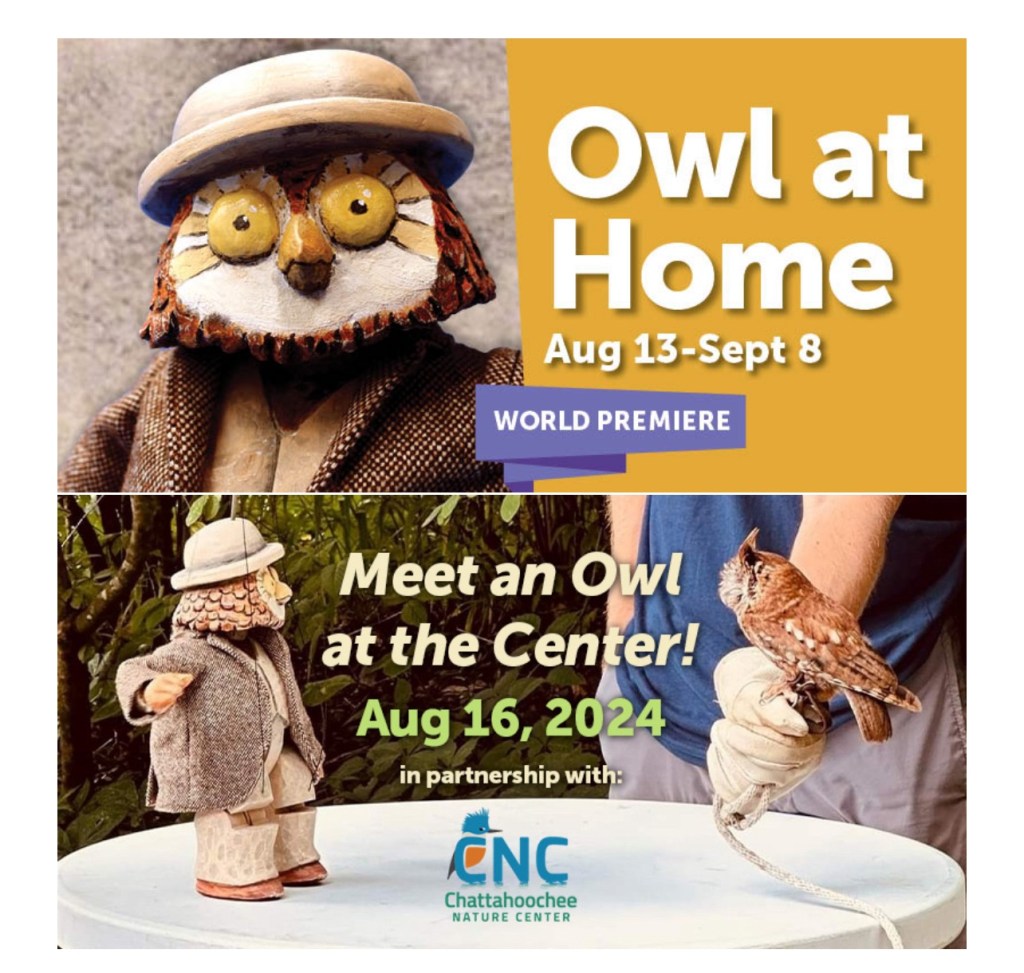 The Center for Puppetry Arts is excited to celebrate the world premiere of the new Theatre for the Very Young production Owl at Home with two new community partnerships with the Chattahoochee Nature Center and The Breman. The Center’s partnership with the Chattahoochee Nature Center (CNC) features an onsite appearance of an Eastern Screech Owl and animal ambassador at the Center for Puppetry Arts on Friday, Aug.16, from 10 a.m. to 12 p.m. The visit from the CNC will showcase its animal rehabilitation efforts and will be accompanied by interactive displays about the Screech Owl. This program is for all ages.