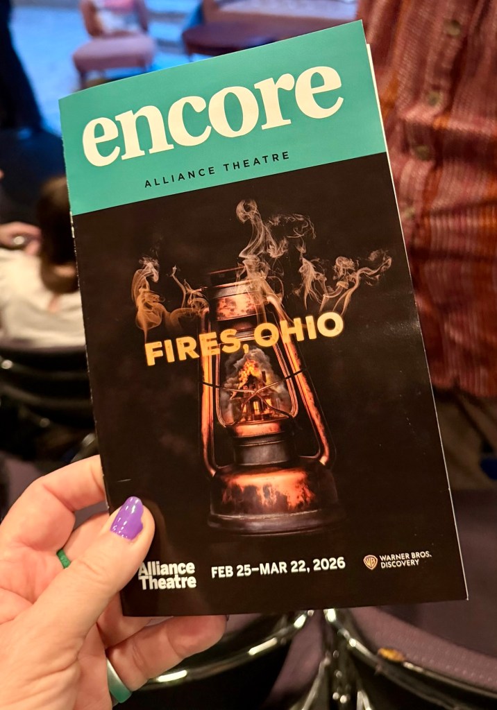 This past weekend I decided to see FIRES, OHIO on the Hertz Stage at the Alliance Theatre. Fire has been a recurring theme in my life ever since my apartment caught fire on November 2nd, so naturally a play with the word “fires” right there in the title caught my attention. I figured it might be therapeutic…or at the very least, thematically on brand.