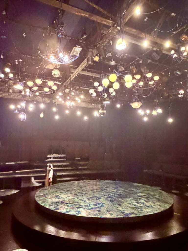The lighting design by Hernando Claros is a showstopper. What initially looks like a cacophony of familiar, almost domestic light fixtures transforms into something cosmic—sometimes harsh and blinding, other times warm and intimate. And then there’s Venus itself: a glowing orb echoing the set’s colors, quietly presiding over the action. Credit also goes to Lead Electrician Mitchell Peterson and crew, who clearly had a lot of fun bringing this ethereal world to life.